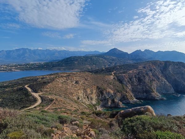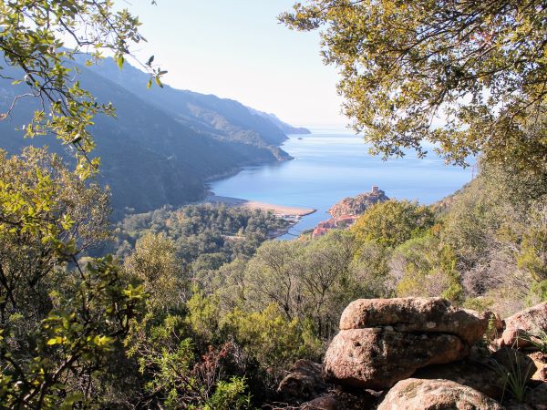 À mi-chemin, vous pouvez faire une pause sur les hauteurs pour admirer le panorama. La dernière portion avant Galéria descend doucement vers la mer, avec une vue spectaculaire sur le golfe de Galéria. L’arrivée se fait dans ce petit village tranquille, niché entre mer et rivière, parfait pour une baignade ou un moment de détente après l’effort.